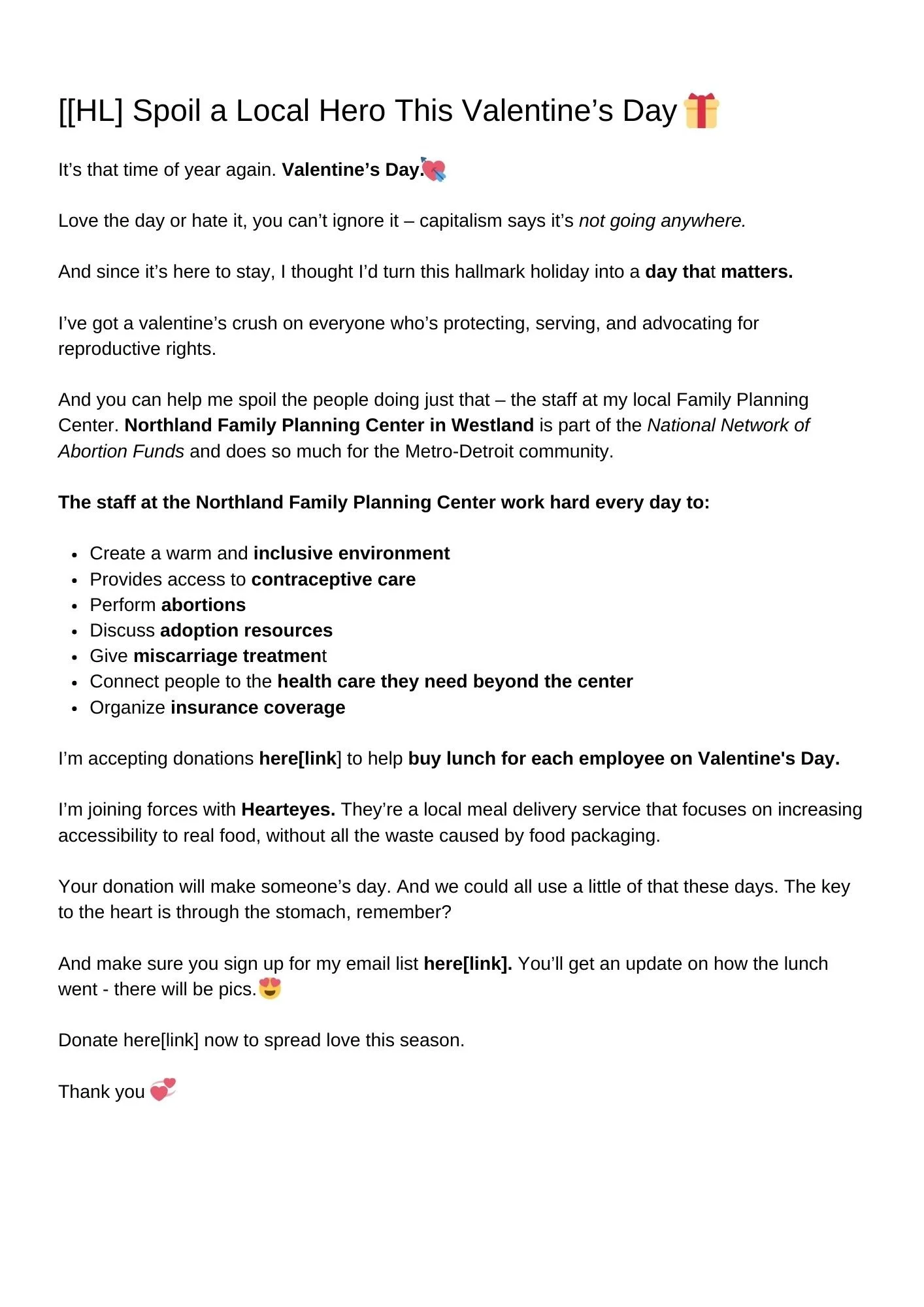 4. Cultivating a Loyal Email List: I implemented an email marketing strategy to build relationships with potential and existing customers. We offered a free Hearteyes dessert in exchange for email sign-ups, which proved very successful, growing the list by 108%. We then segmented the list based on expressed interests and created personalized email campaigns announcing new menu items, special promotions, upcoming events, and exclusive content like cooking tips and nutritional information.